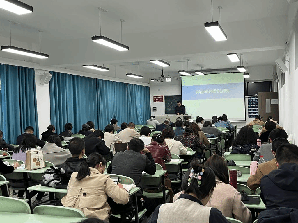 于2023年10月18日下午18:30在9号教学楼103教室组织全体研究生导师开展《研究生导师指导行为准则》专题培训学习。会议由萝莉岛